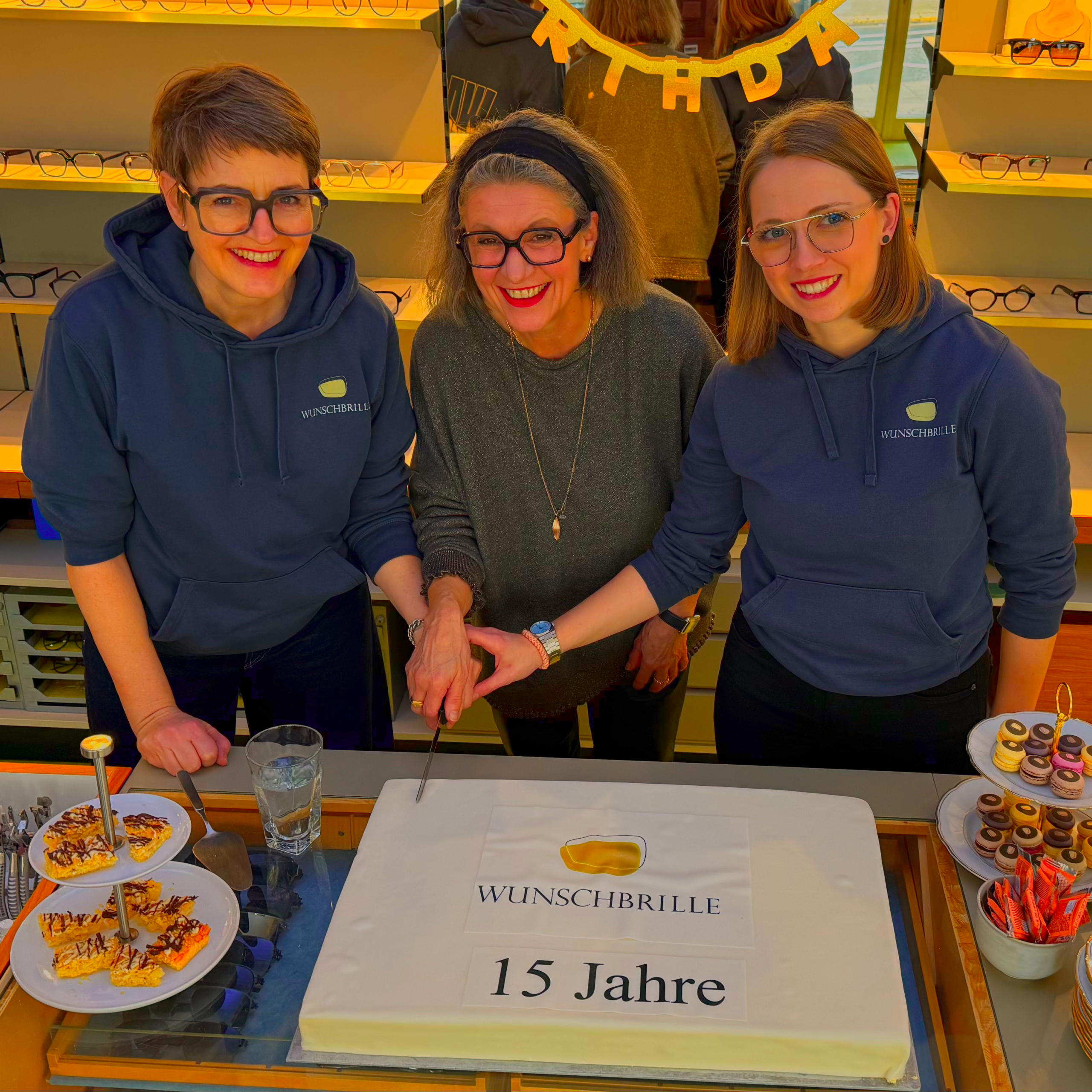 Die Bilder auf dieser Seite fangen die besondere Stimmung ein und zeigen, mit wie viel Begeisterung wir unsere Wunschbrille in Ludwigsburg seit 15 Jahren führen – und gefeiert haben.